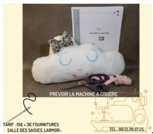 Tarif 15€ +3€ fournitures (prévoir la machine à coudre)