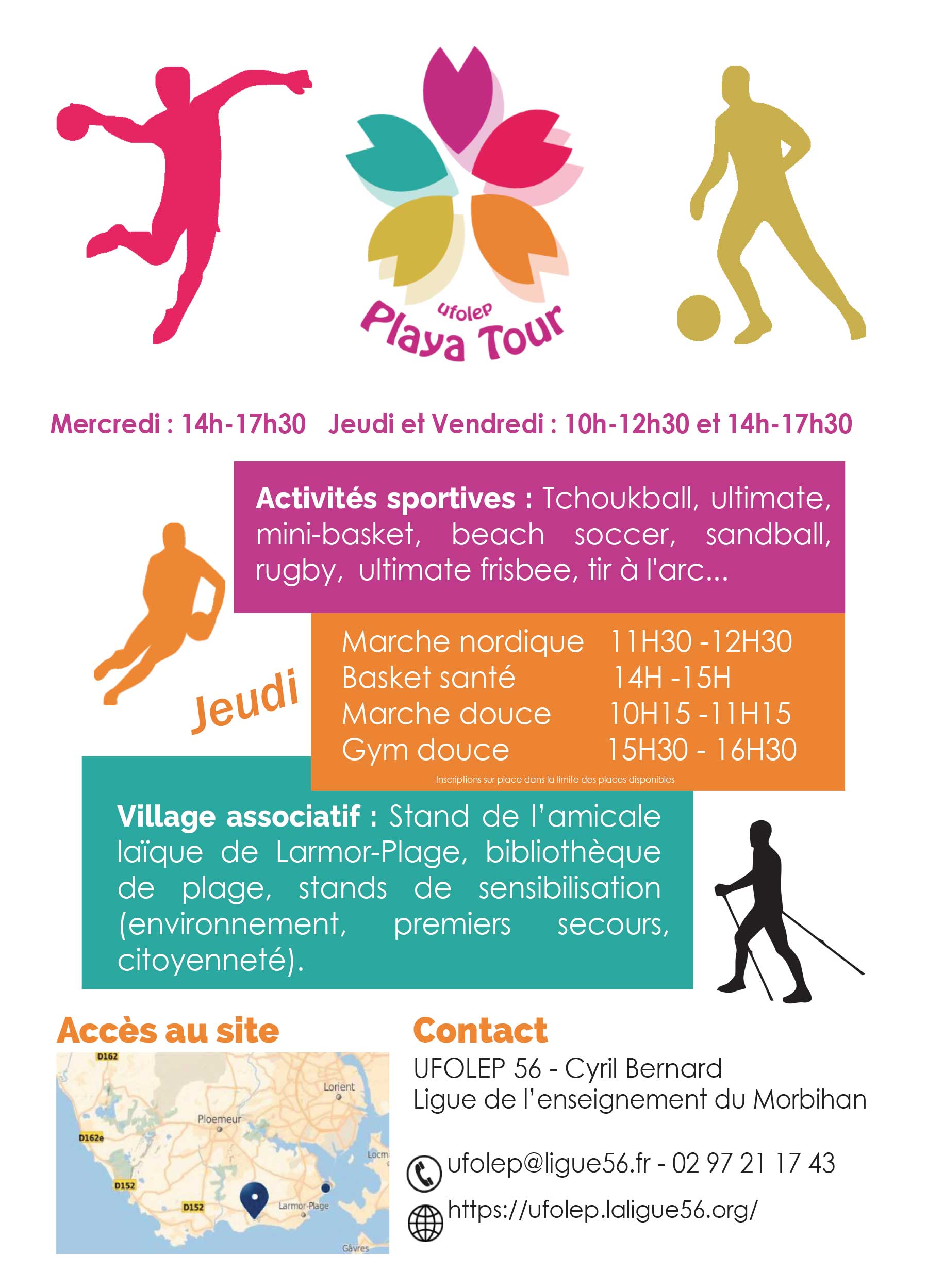 L’Amicale Laïque de Larmor-Plage sera une nouvelle fois partenaire du Playa Tour de l’UFOLEP du 6 au 8 juillet 2022 sur l’anse de Kerguélen.